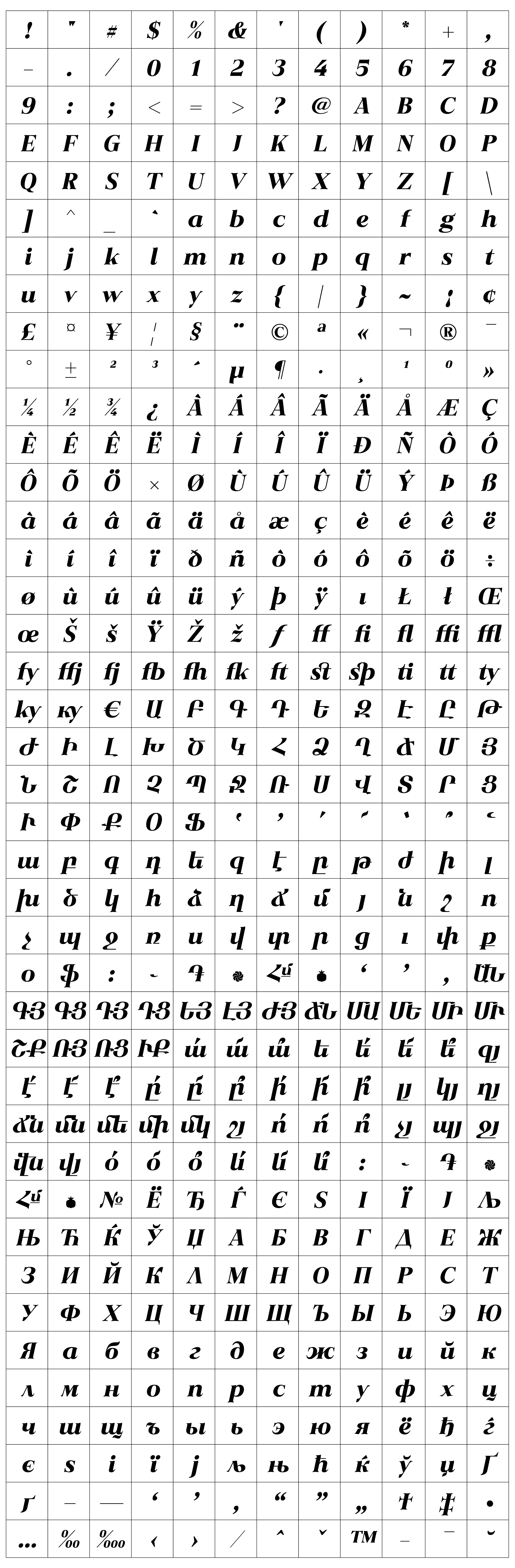 It includes Armenian, Cyrillic and Latin Central European language systems.