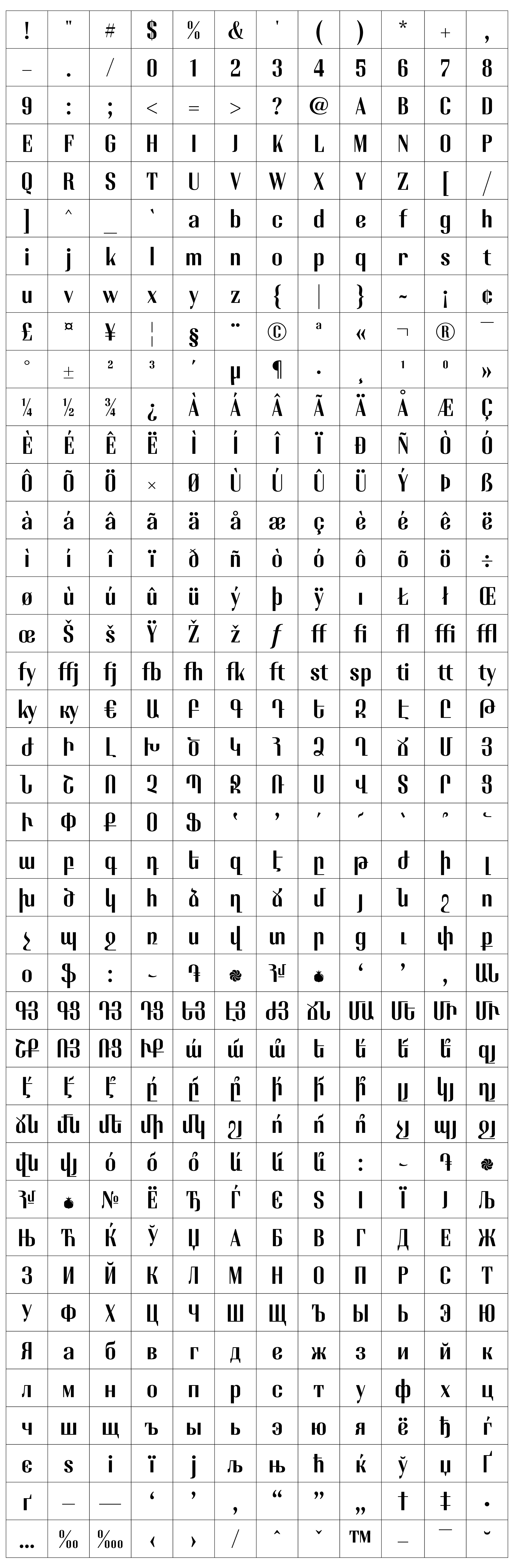 The font includes Basic and many Advanced Ligatures for Latin and Armenian.